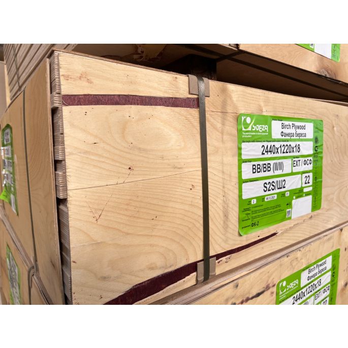 Voordelig per pak te bestellen: 18mm berken multiplex, kwaliteit BB/BB onbehandeld in formaat 244x122cm.